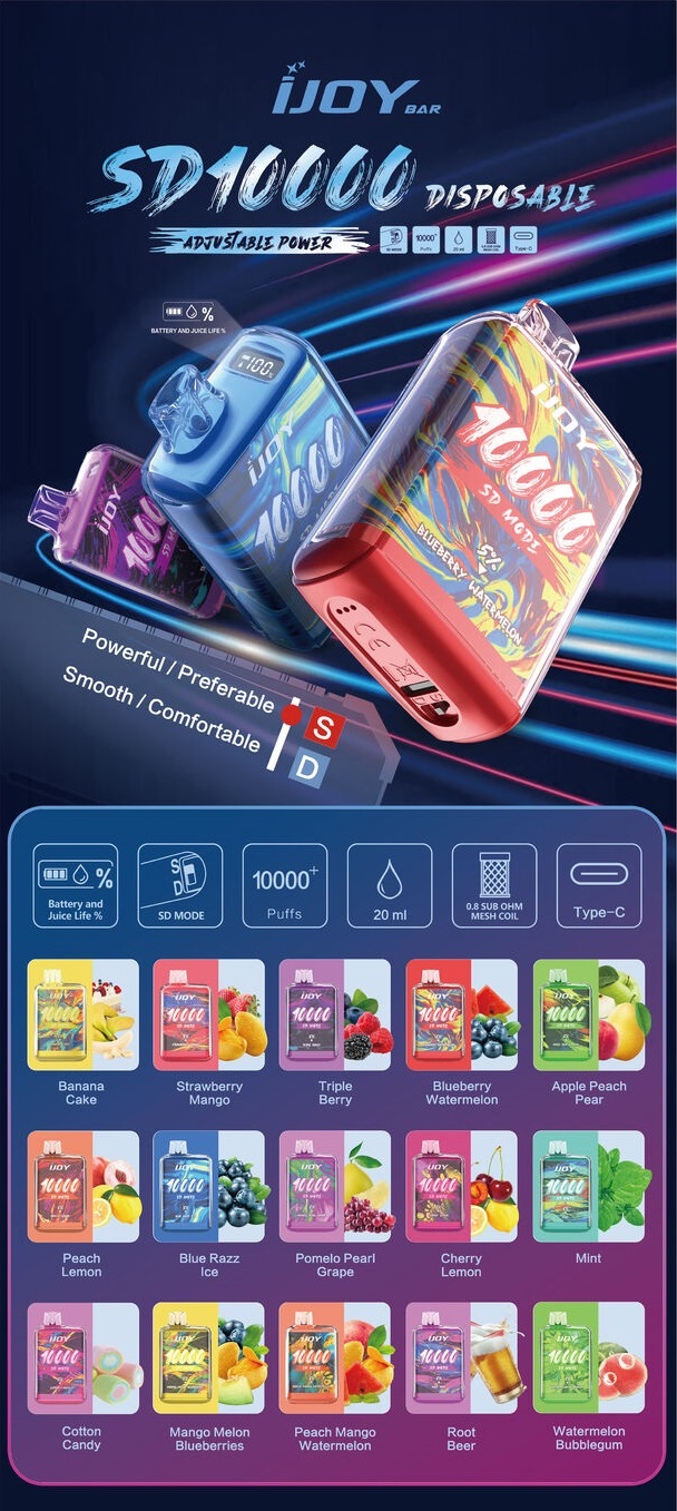array of flavors, the iJoy Bar SD10000 Disposable is an innovative disposable