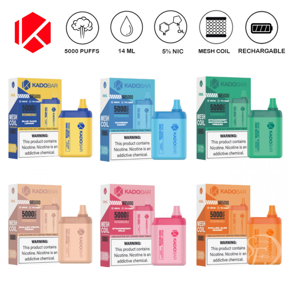 KADO BAR 5000 PUFFS RECHARGEABLE DISPOSABLE VAPE 5CT/DISPLAY