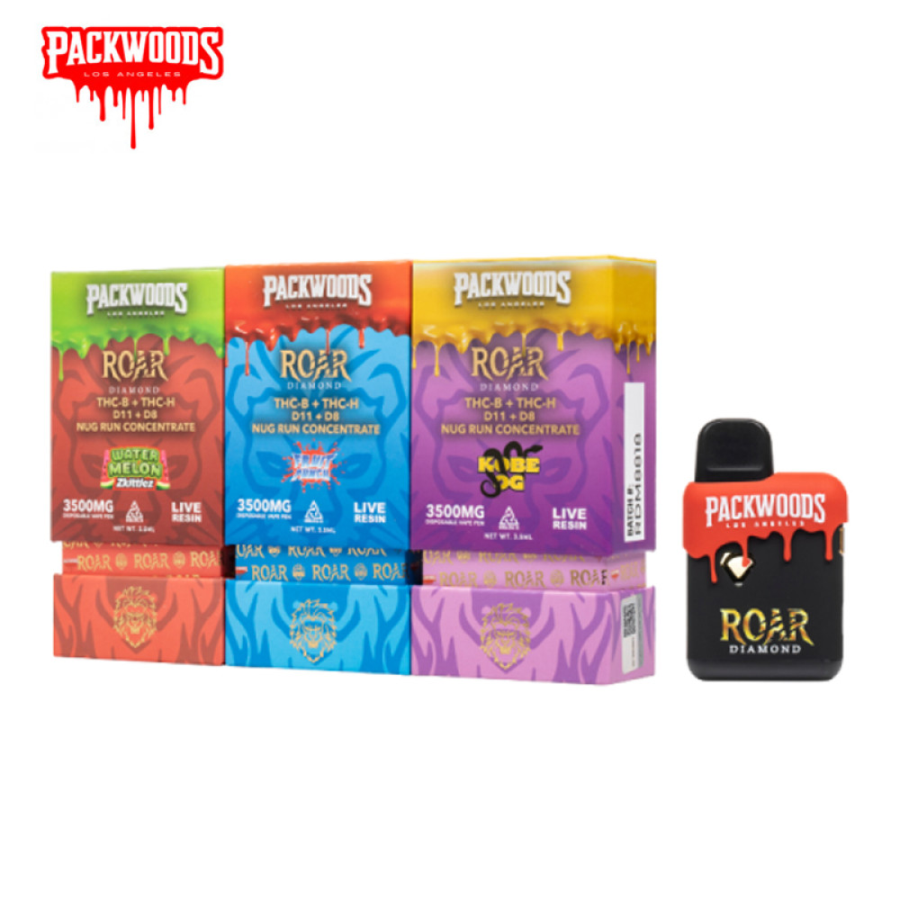 PACKWOODS ROAR DIAMOND DELTA 8 + DELTA 11 + THC-B + THC-H LIVE RESIN DISPOSABLE VAPE 3.5GM 5CT/PK